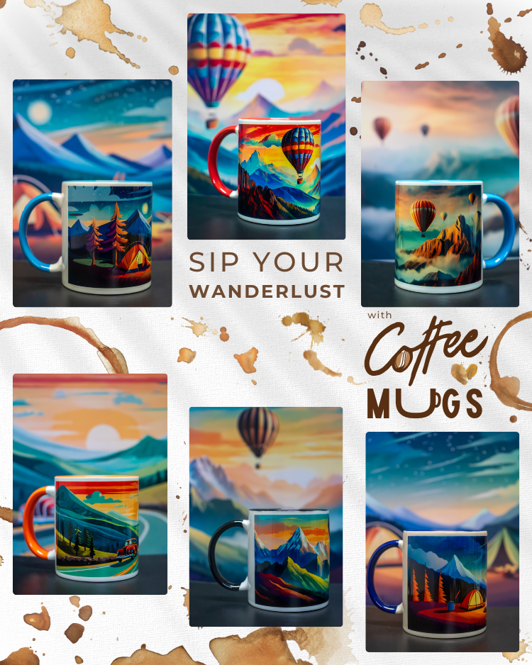 Sip in style with our enchanting mugs! Let them be companions for your next journey. Whether you're savoring a quiet moment at home or planning your next odyssey, our mugs brew dreams and memories with every delicious sip.