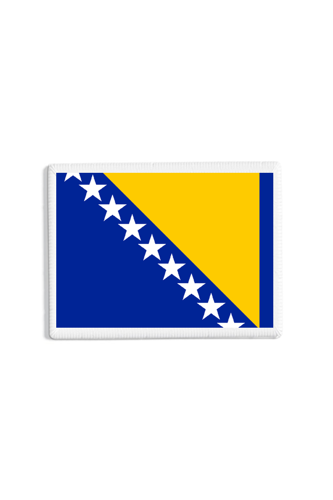 this finely embroidered patch features a blue field with a yellow triangle and white stars along the hypotenuse, representing the bosnian flag. perfect for backpacks, jackets, or travel gear, it's a stylish way to celebrate and honor bosnia & herzegovina. attach it and proudly display the heritage and culture.
