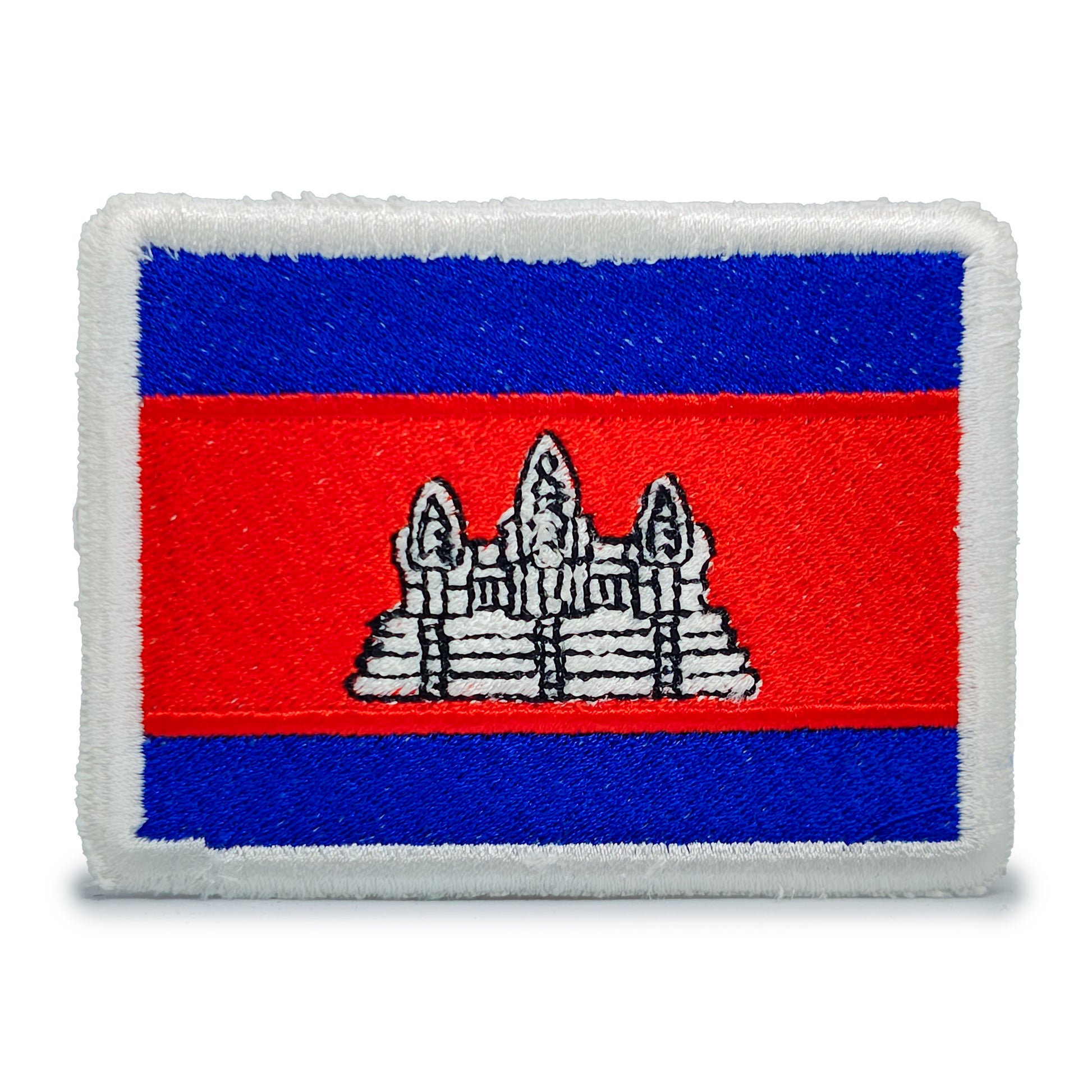 this finely embroidered patch features the iconic red and blue horizontal stripes with a white depiction of angkor wat in the center, representing the cambodian flag. perfect for backpacks, jackets, or travel gear, it's a stylish way to celebrate and honor cambodia. attach it and proudly display the heritage and culture.
