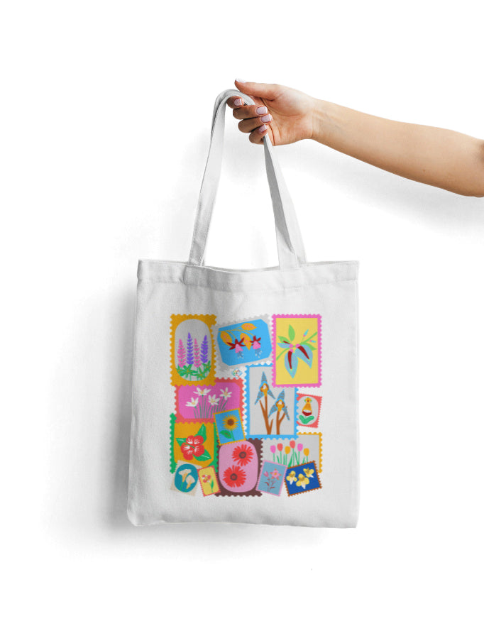 this floral stamps tote bag brings a vibrant, nature-inspired charm to your everyday style. spacious and sturdy, it's perfect for those who love carrying beauty, color, and creativity wherever they go.