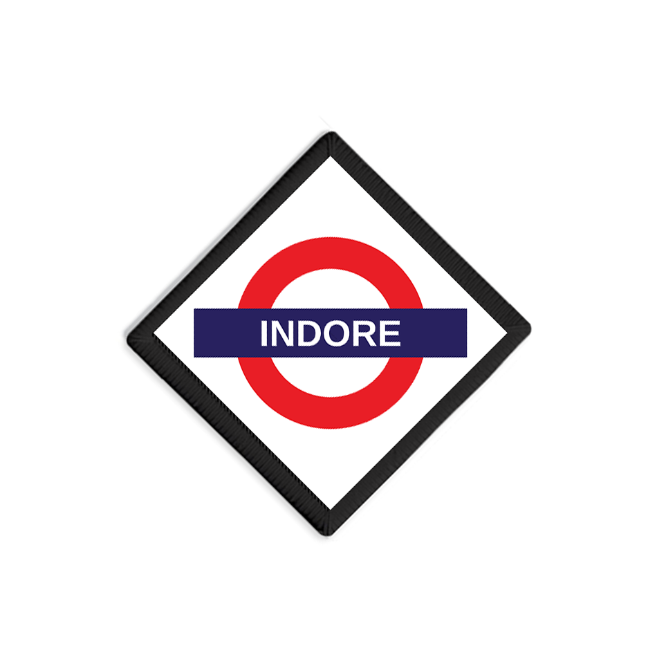 inspired by railway station signboards, this patch captures indore - a city known for its street food, buzzing markets, and welcoming charm. perfect for travelers who’ve reached here by train and carry memories of night journeys, warm breakfasts at the station, and the city’s lively spirit.