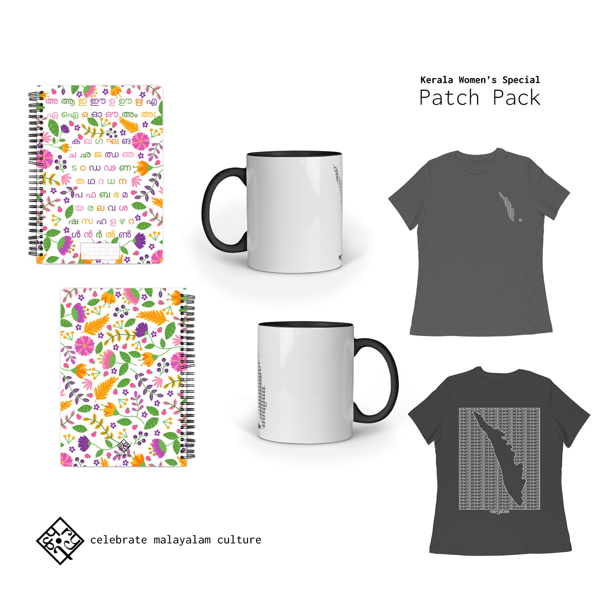 embrace kerala’s charm with this pack, featuring a kerala geolingo t-shirt, a minimalist geolingo mug, and a notebook adorned with the malayalam varnamala - perfect for women who celebrate tradition and culture.
