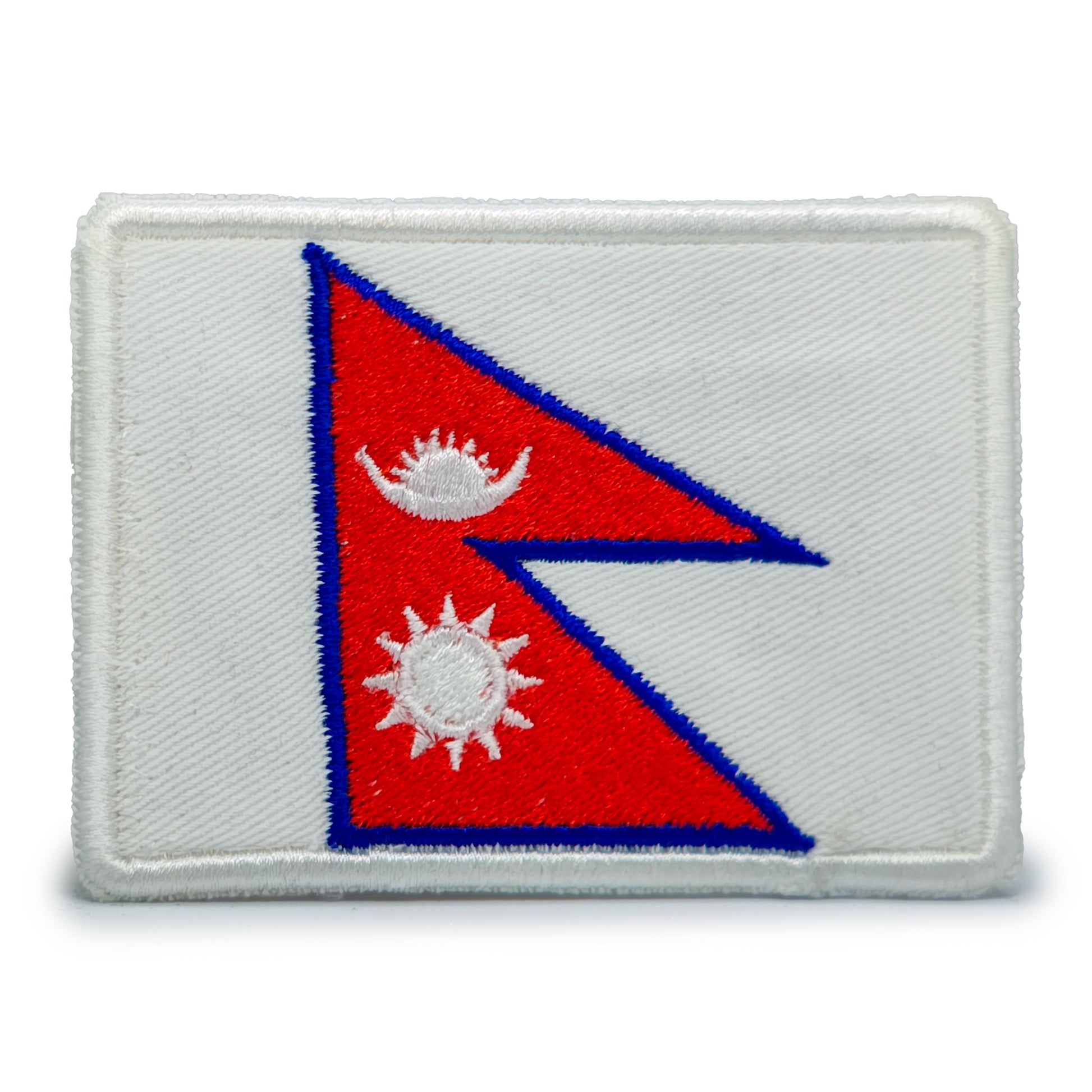 this unique patch features the distinctive double-pennon design with a crimson background, blue border, and white emblems of the moon and sun, representing the nepali flag. perfect for backpacks, jackets, or travel gear, it's a stylish way to celebrate and honor nepal. attach it and proudly display the heritage and culture.