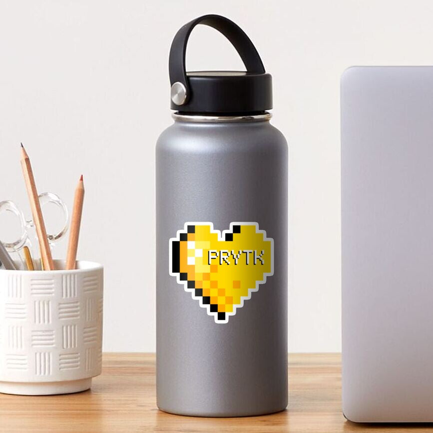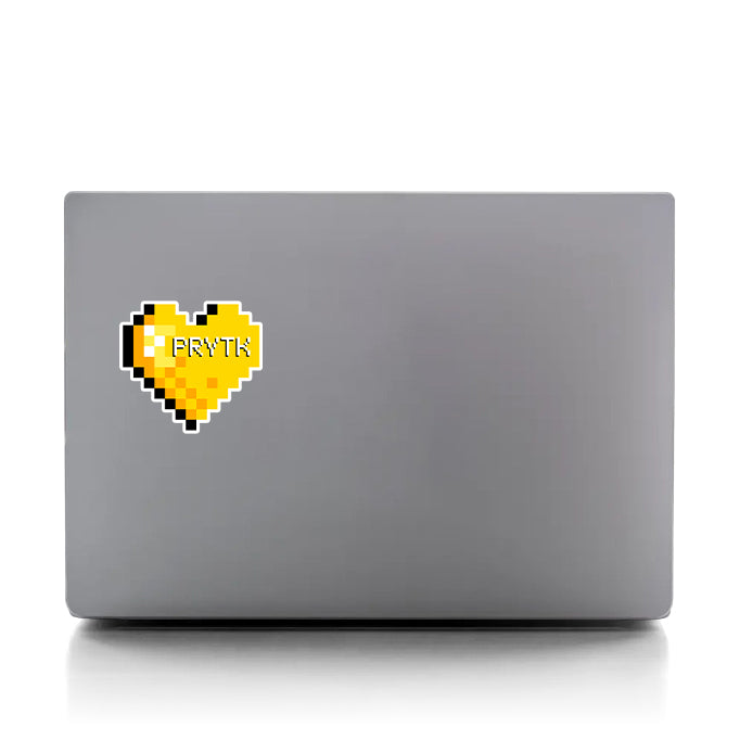 this bold PRYTK yellow pixel heart sticker symbolizes your love for travel and identity. it adds a nostalgic yet modern charm to laptops, bottles, journals, bikes, and more.