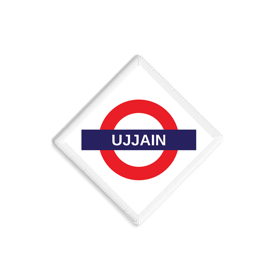 inspired by traditional railway signboards, this patch reflects ujjain - one of bharat’s oldest cities and a revered spiritual hub. a thoughtful keepsake for those who’ve taken train journeys to attend the mahakaleshwar aarti, visit ancient temples, or reconnect with timeless traditions.