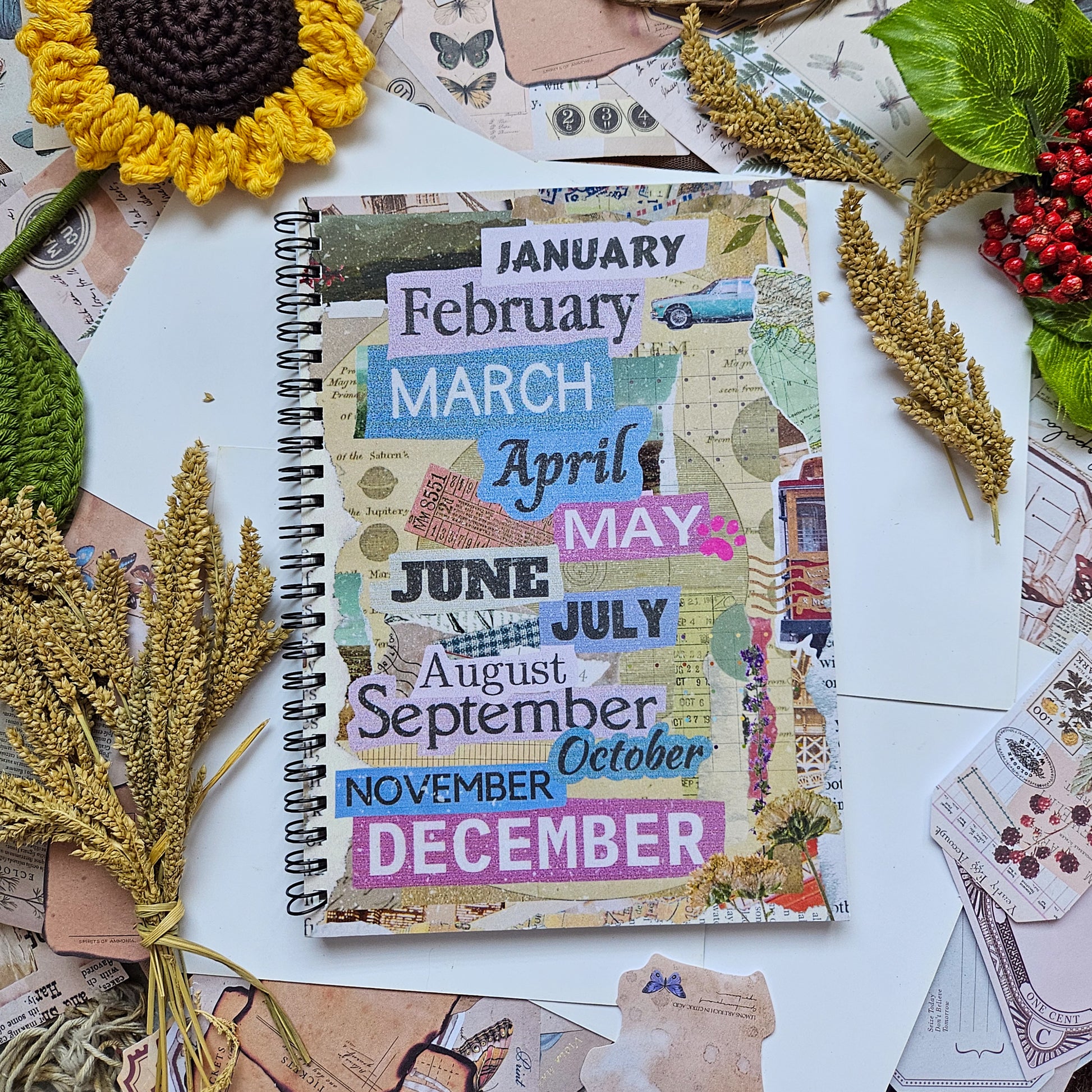 designed with retro charm, this notebook is perfect for planning monthly goals, tracking important dates, and capturing reflections in a vintage-inspired style.