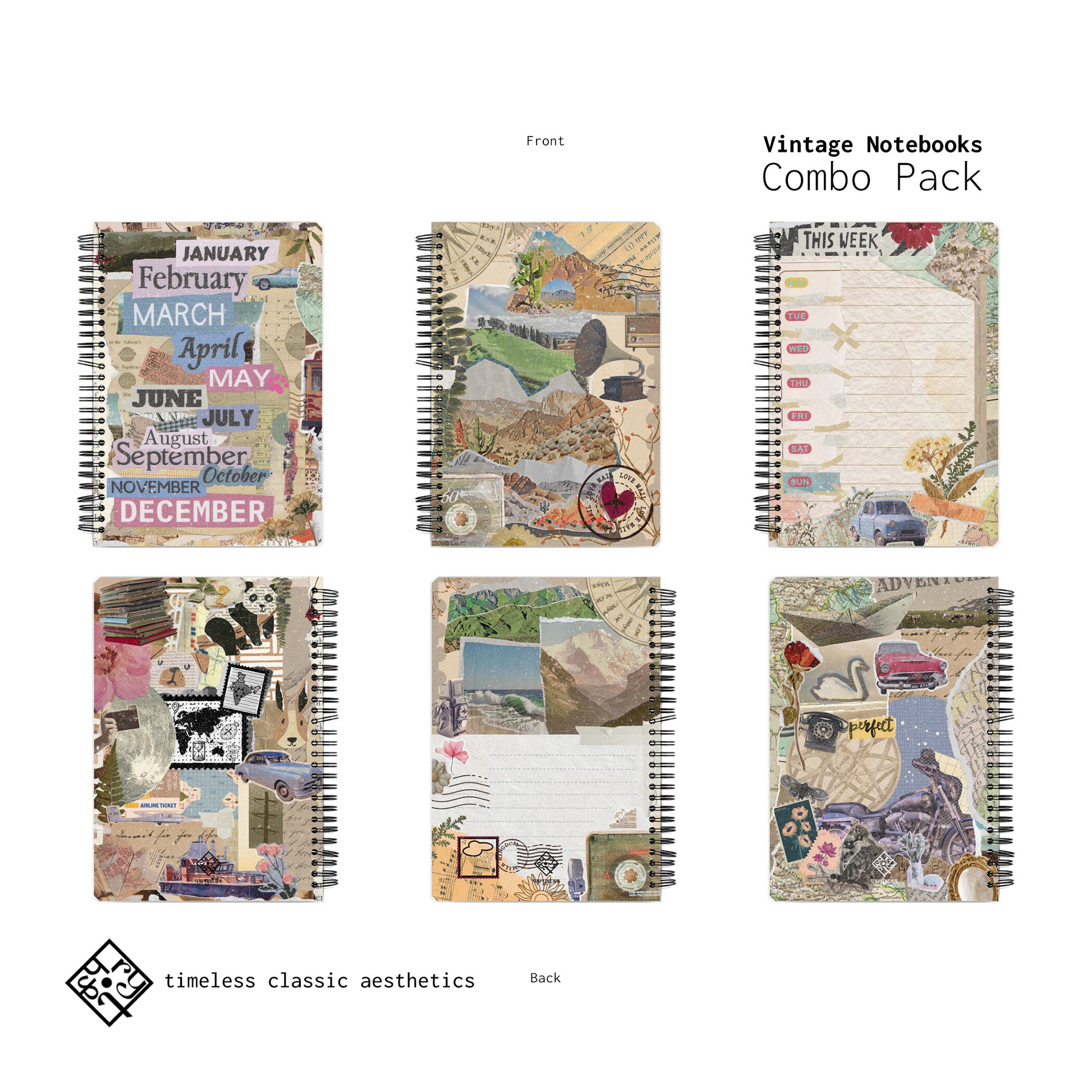 step into a world of timeless charm with our vintage notebooks combo. this curated set brings together the elegance of yesteryears, featuring designs inspired by classic aesthetics. perfect for those who appreciate the beauty of vintage style, this combo includes notebooks tailored for weekly planning, monthly organization, and creative journaling. whether you’re charting your days, reflecting on your month, or simply capturing your thoughts, this combo is your perfect companion for a sophisticated and organized life.