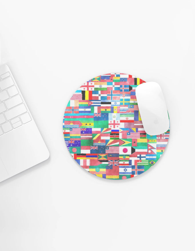 celebrate global unity with this world flags round mouse pad. the vibrant flags collage design brings an international flair to your desk, perfect for explorers and culture lovers. a bold tribute to the spirit of worldwide connection.